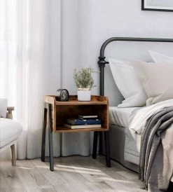 VASAGLE Nachtkonsole »LET46X«, Nachttisch, Beistelltisch, mit offenem Fach und Gitterablage, vintage