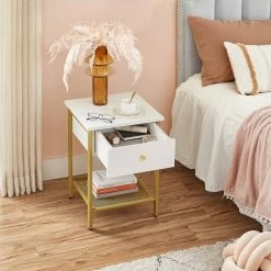 VASAGLE Nachtkonsole »LET04BX«, Nachttisch, Beistelltisch, Glastisch mit Schublade, vintage
