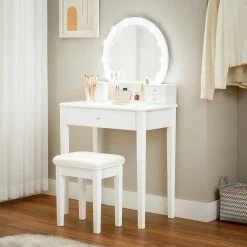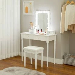 VASAGLE Schminktisch »RDT11WL RDT11BL«, Frisiertisch, Kosmetiktisch, mit Beleuchtung und gepolsterter Hocker Schwarz, Weiß