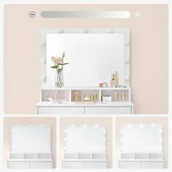 VASAGLE Schminktisch »RDT114W01«, Frisiertisch,Kosmetiktisch mit Spiegel und Glühbirnen, mit 2 Schubladen,weiß