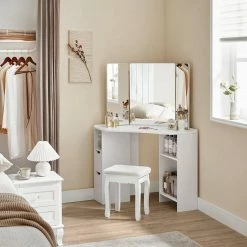 VASAGLE Schminktisch »RDT121T10«, Eckschminktisch, Frisiertisch,3-teiliger Klap pspiegel, 2 Schubladen, 3 offene Fächer