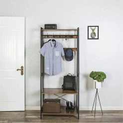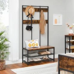 VASAGLE Garderobenständer »HSR46BX«, Garderobe mit 9 Kleiderhaken und Schuhregal, vintage