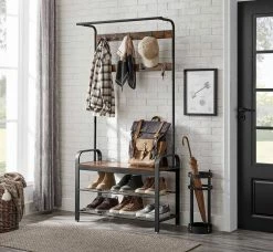 VASAGLE Garderobenständer »HSR41«, Kleiderständer mit Schuhablagen, vintage Grau, Walnussbraun