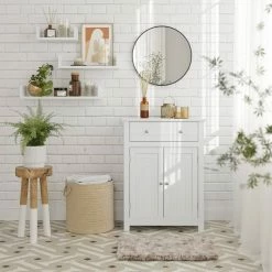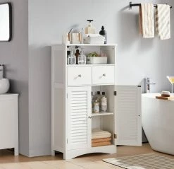 VASAGLE Badkommode »BBC145W01«, Kommode mit 2 Türen, 2 Schubladen, Hoch 108 cm, verstellbare Regalebene, skandinavischer Stil, weiß
