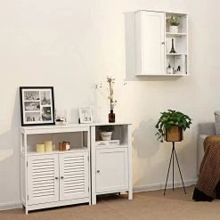 VASAGLE Badkommode »BBC69WT«, Hochschrank, Badschrank mit 2 Lamellentüren, weiß