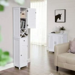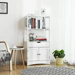 VASAGLE Badkommode »BBC82WT«, Badschrank, Bücherregal, 60 x 32,5 x 154 cm, mattweiß