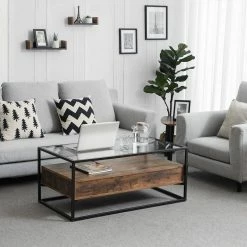 VASAGLE Couchtisch »LCT31BX«, Sofatisch mit 2 Schubladen, gehÀrtetes Glas, stabil, Wohnzimmer, Lounge, 106 x 57 x 45 cm, vintage