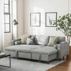 VASAGLE Schlafsofa »LCS801«, Bettsofa mit Stauraum, Ecksofa, mit Becherhalter, einfache Montage, 223 x 142 x 88 cm (L x B x H), modern Dunkelgrau, Hellgrau