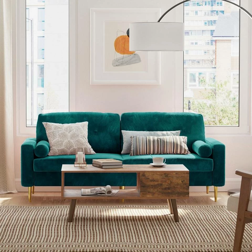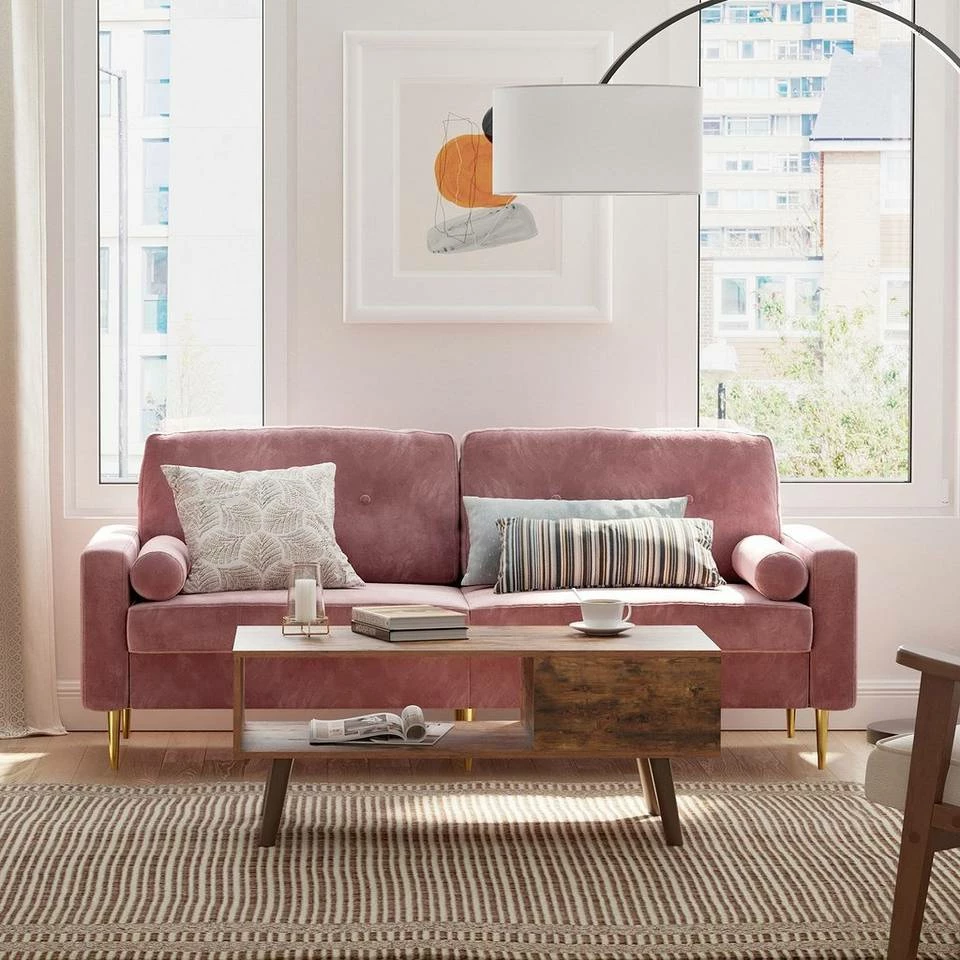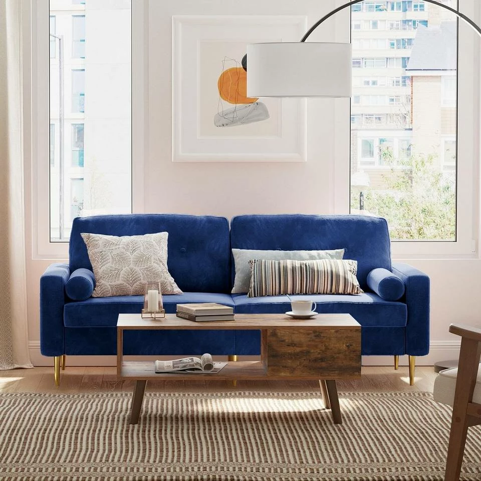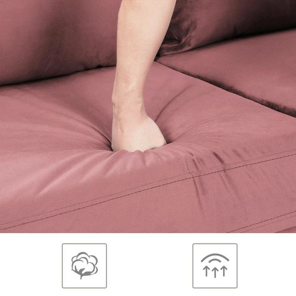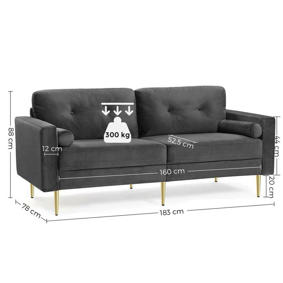 VASAGLE 3-Sitzer »LCS001«, Bezug aus Samt, Metallbeine, Klassisch bis modern, einfacher Aufbau, 183 x 78 x 88 cm Blau, Grau, Petrolfarben, Rosa