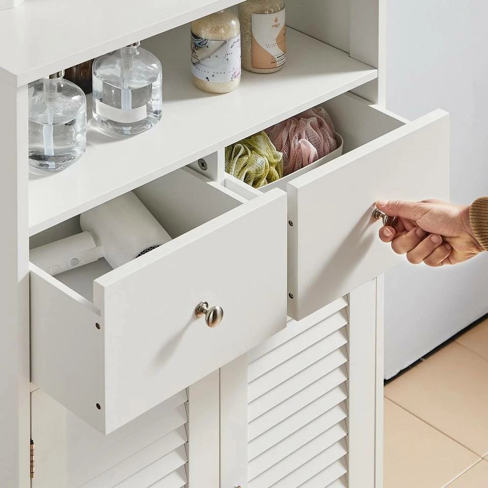 - Großraum: Mit der 3-stufig verstellbaren Regalebene und den 2 Schubladen besitzt der Unterschrank mehr Platz. Ihr Kamm kann in das offene Fach.