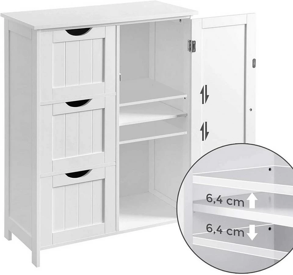 - AUCH GROßE BADUTENSILIEN PASSEN HINEIN: Die Regalebene hinter der Schranktür ist auf 3 unterschiedliche Höhen verstellbar. Platzieren Sie kleinere Flaschen in den 3 Schubladen