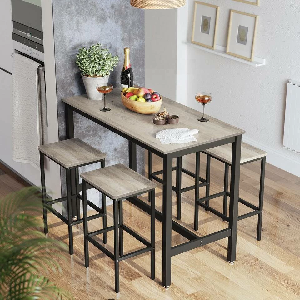 - Die beiden 40 x 30 x 65 cm großen Barstühle passen perfekt unter den Bartresen, sodass das Set extrem platzsparend ist, selbst wenn Sie 2 weitere Stühle dazukaufen