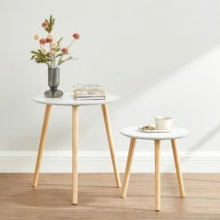 VASAGLE Beistelltisch »LET07WN«, Beistelltisch-Set rund, Sofatische, Couchtische, weiß