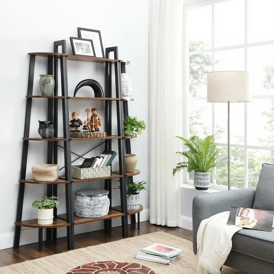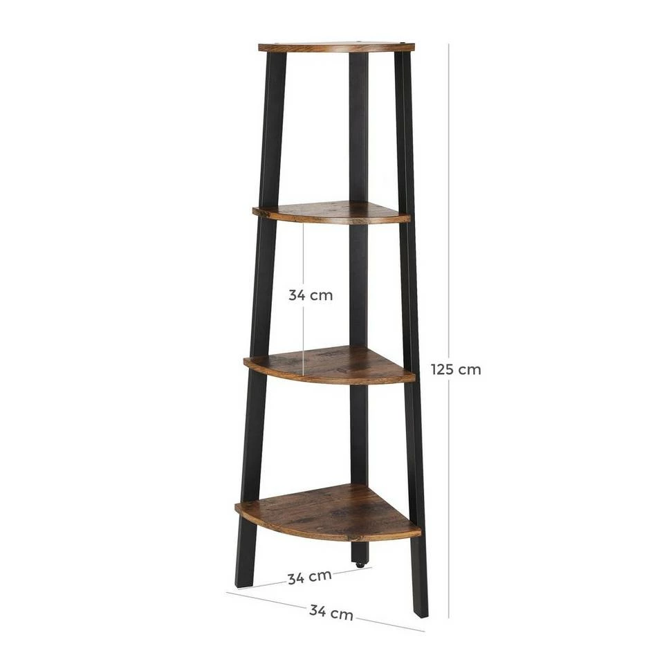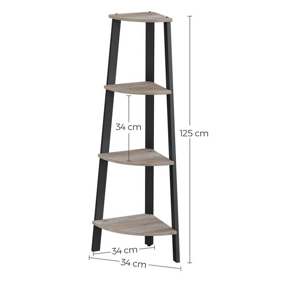 - Stabiles Metall für den Rahmen und haltbare Holzspanplatten für die Regalböden verleihen diesem Leiterregal für die Ecke eine lange Nutzungsdauer