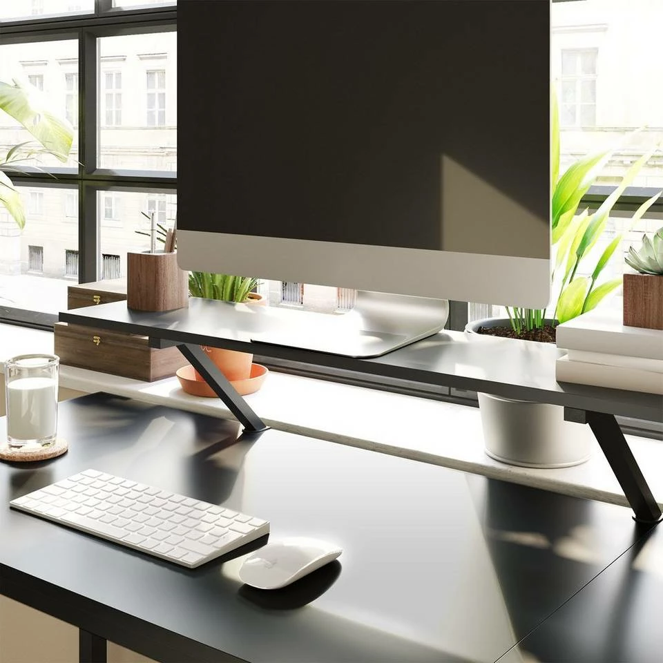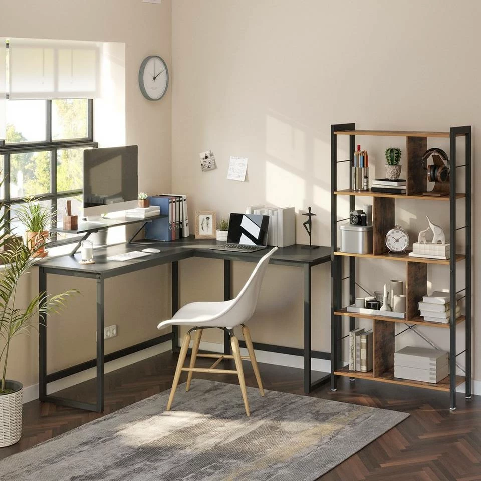 - NOCH EINEN TICK PRAKTISCHER: Dieser stilvolle Eckschreibtisch verfügt über eine platzsparende L-Form und ist mit einem praktischen, 20 x 90 cm großen Monitorständer ausgestattet
