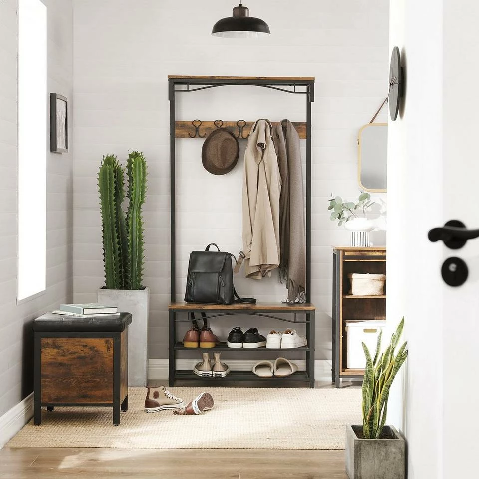 - Robuste Metallrohre mit matter Oberfläche und Holzspanplatten (E1 Klasse) im Vintage-Stil machen die Schuhbank stark und stabil. Die Holzablage ist bis 100 kg belastbar