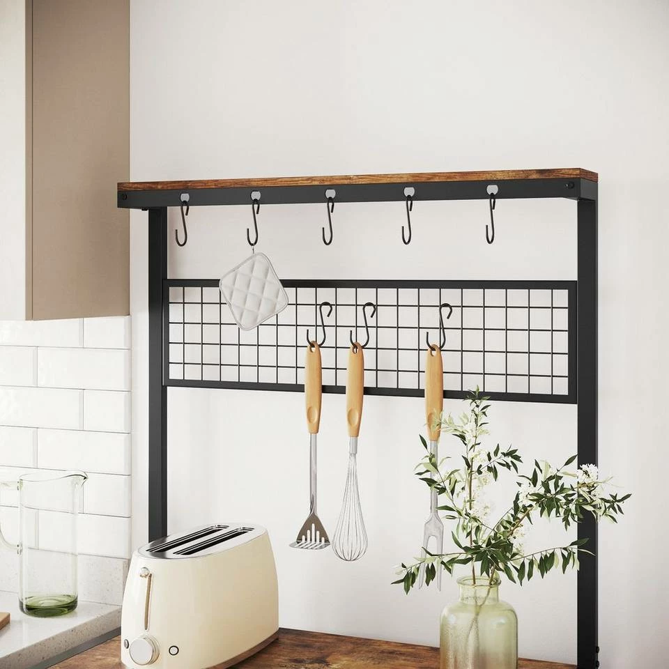 - Dank des robusten Eisengestells und der 15 mm dicken Holzspanplatten ist dieses Regal stark genug, um hierauf alle wichtigen Küchenutensilien unterzubringen