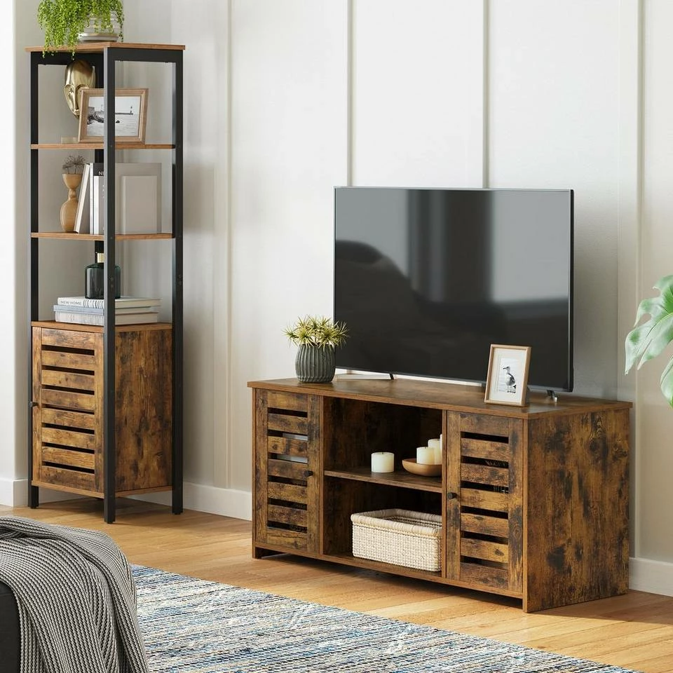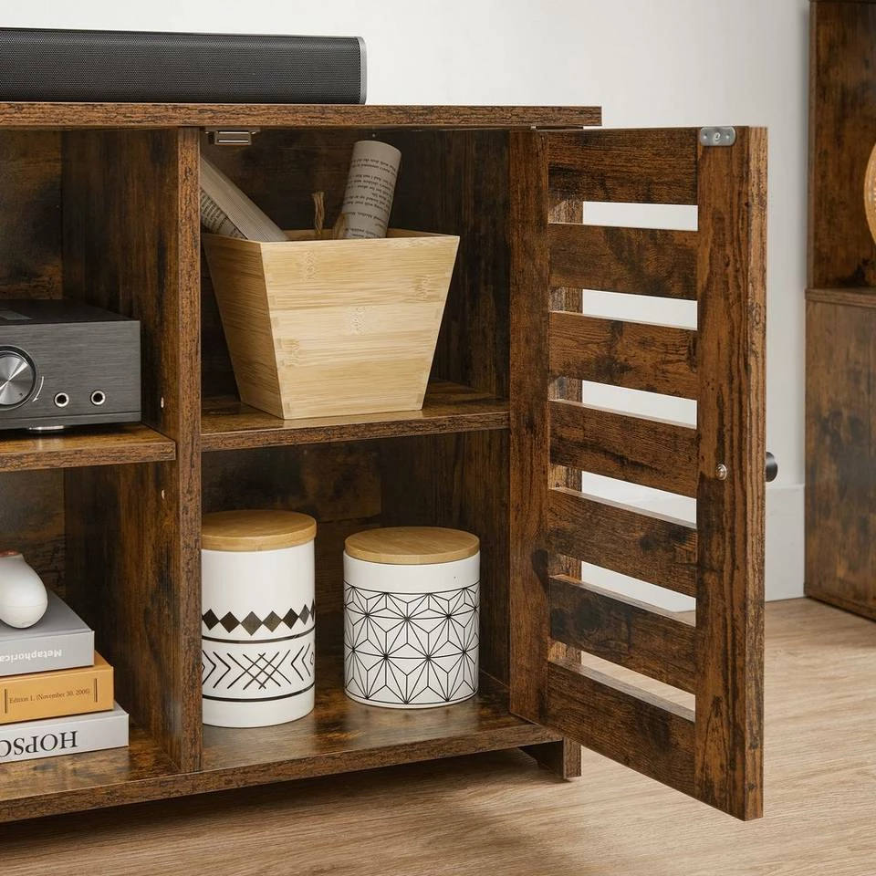 - Ein echter Blickfang: Mit seiner rustikalen Holzfarbe und 2 Lamellentüren ist dieser TV-Schrank eine atmosphärische Ergänzung in Ihrem Wohnzimmer