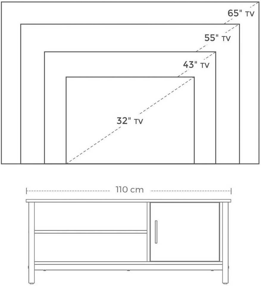 - GRÖßER, FLACHER, SCHÄRFER: Dank des 0.7 mm dicken Eisengestells und der stabilen 15 mm Holzspanplatten ist er gut belastbar und für Fernsehgeräte bis zu 48 Zoll geeignet
