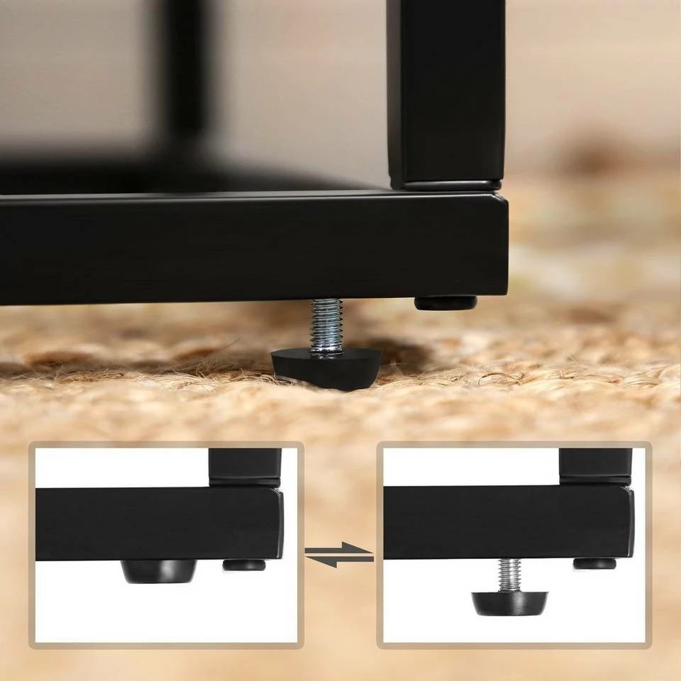 – Farbe: Schwarzes Eisengestell, Vintage-Ablage in Holzoptik, durchsichtig