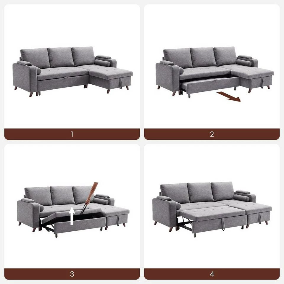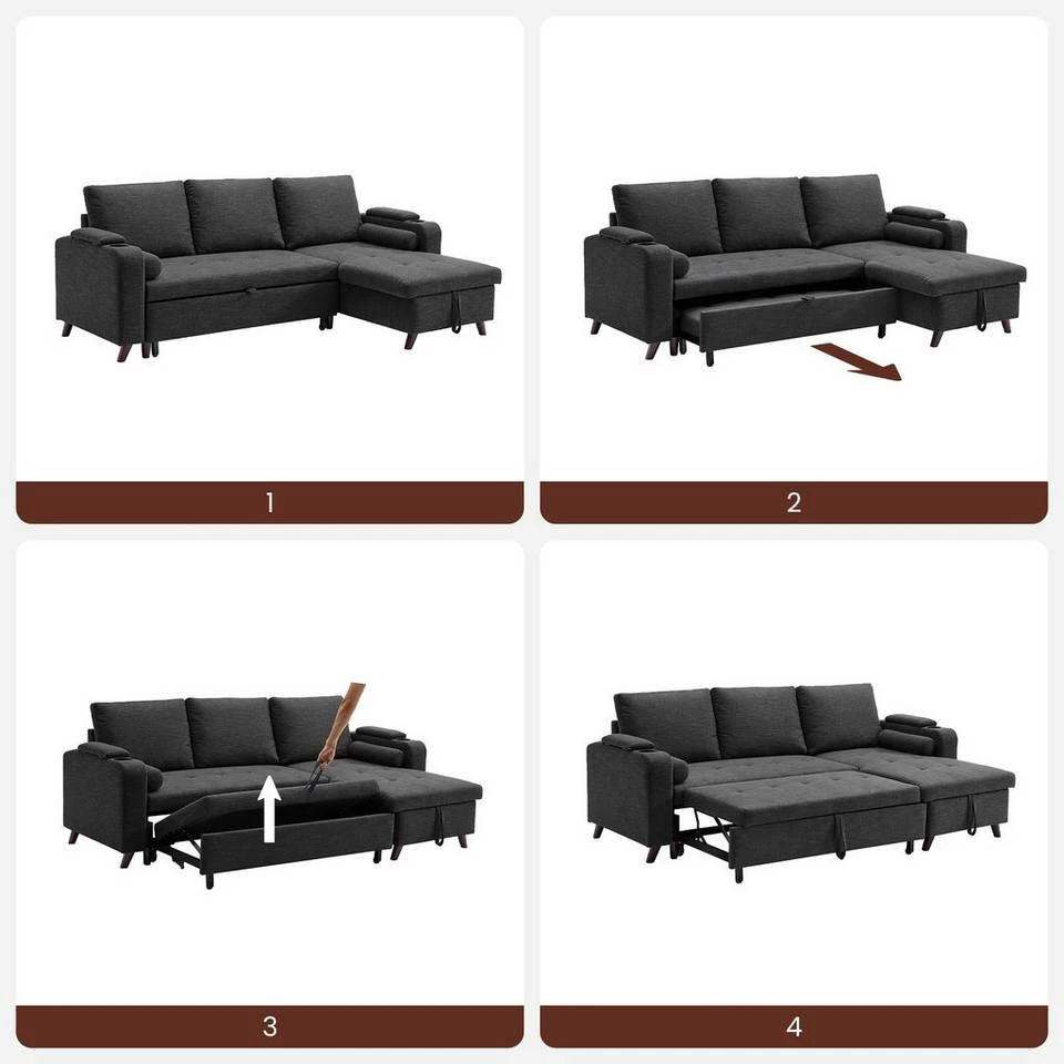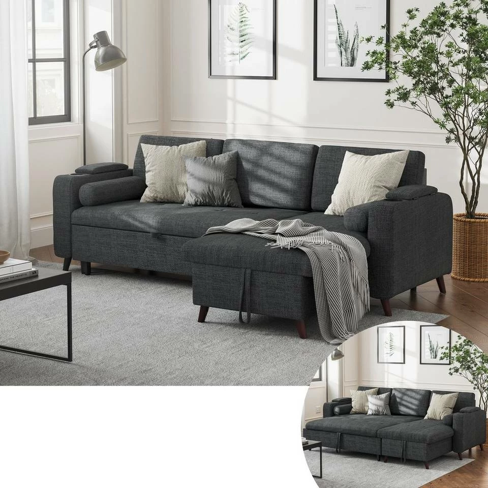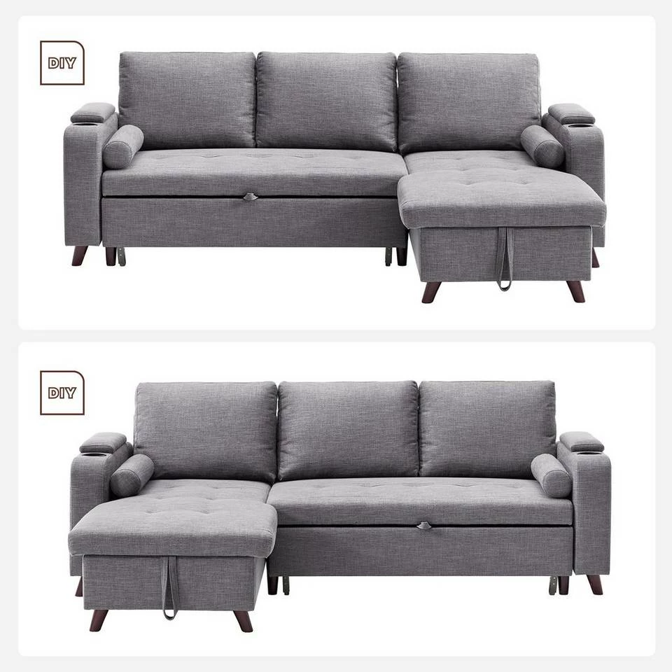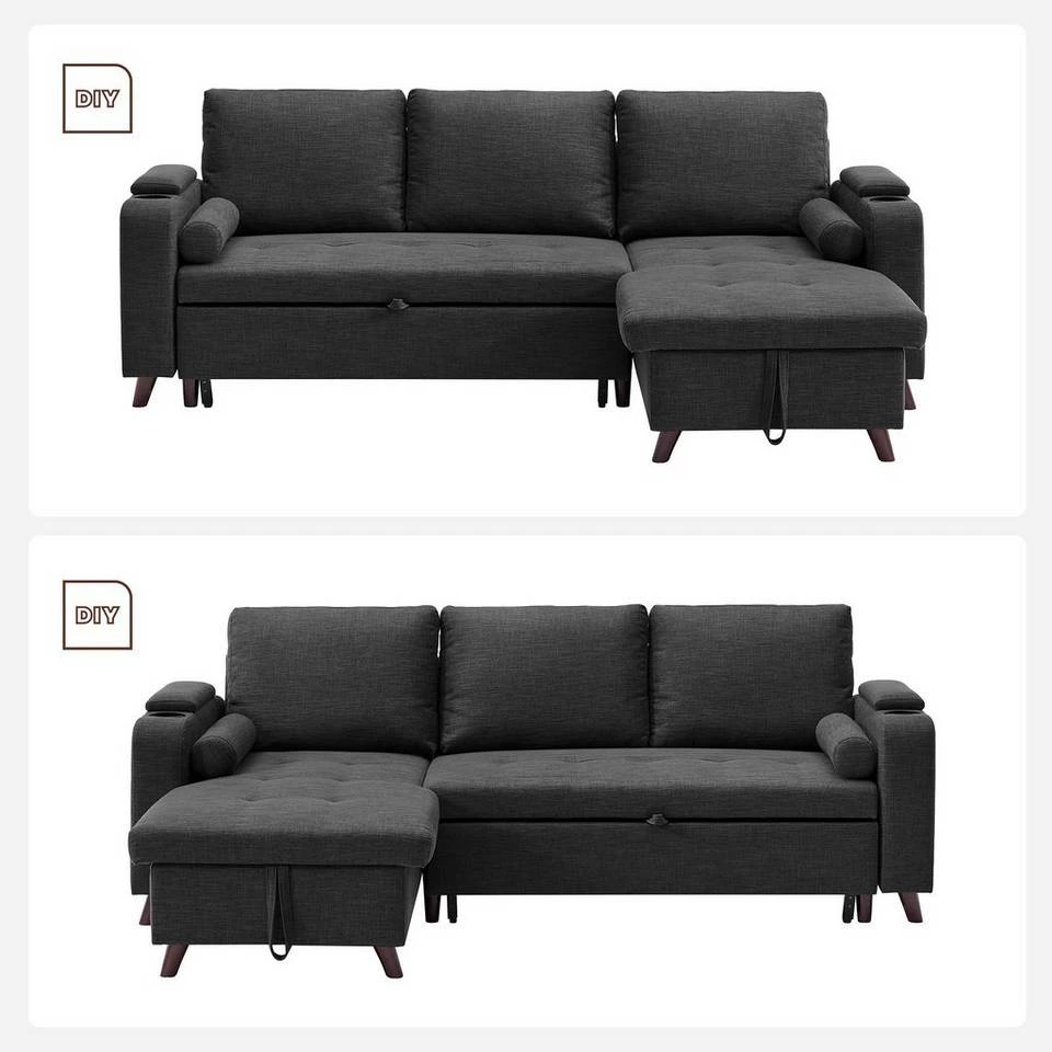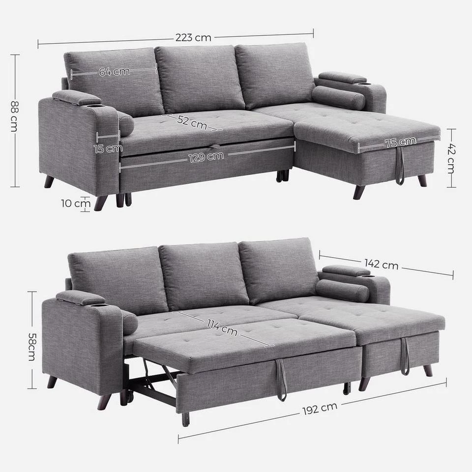 VASAGLE Schlafsofa »LCS801«, Bettsofa mit Stauraum, Ecksofa, mit Becherhalter, einfache Montage, 223 x 142 x 88 cm (L x B x H), modern Dunkelgrau, Hellgrau