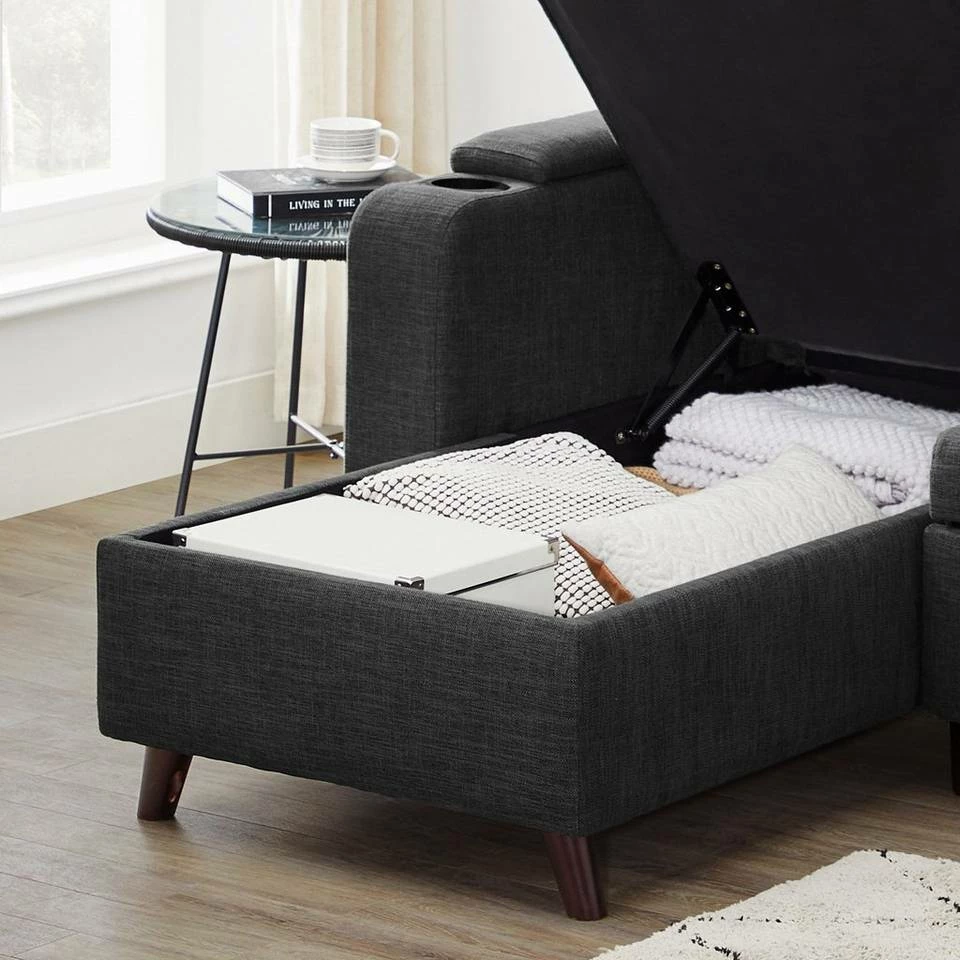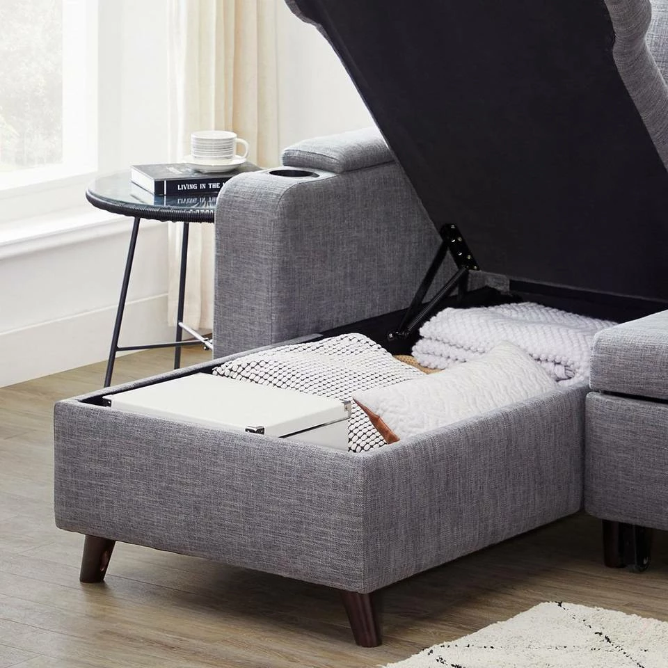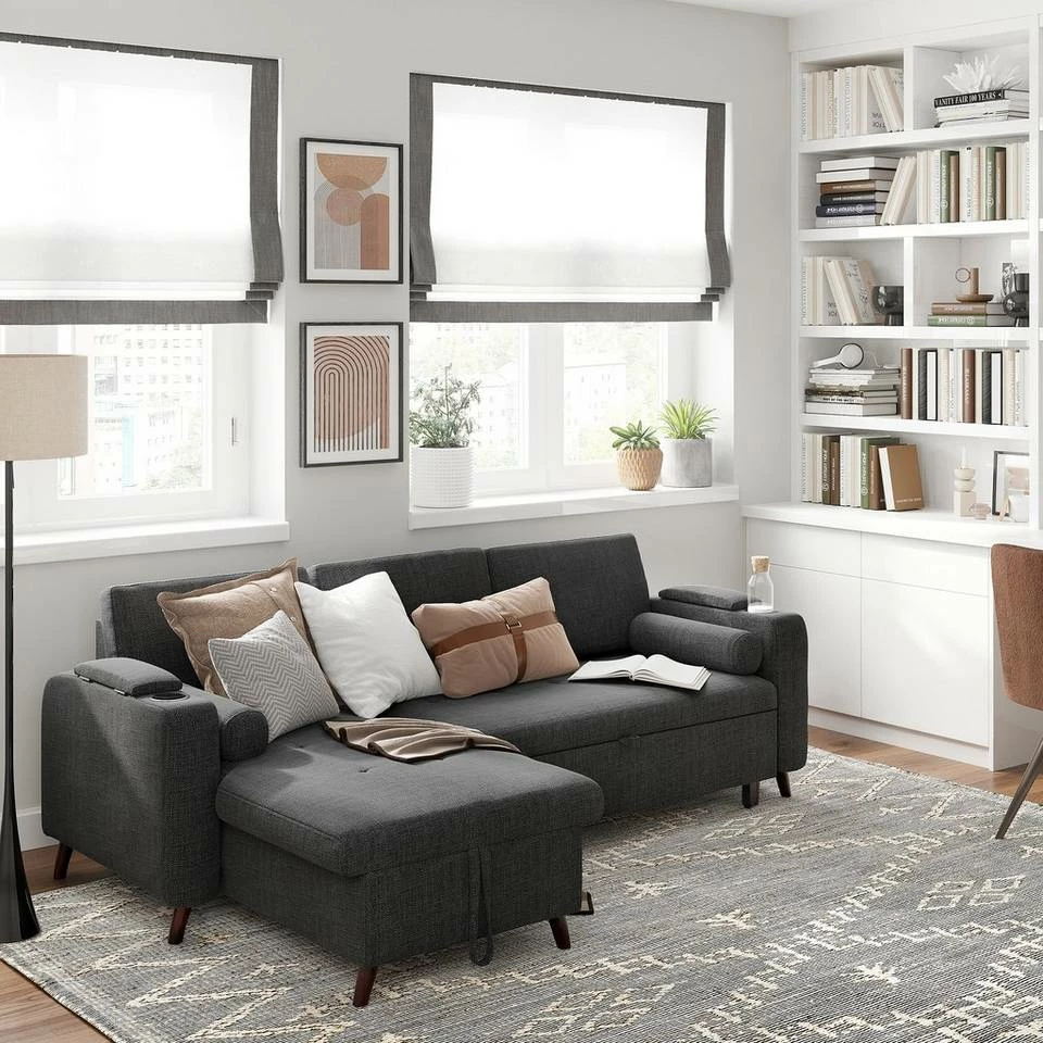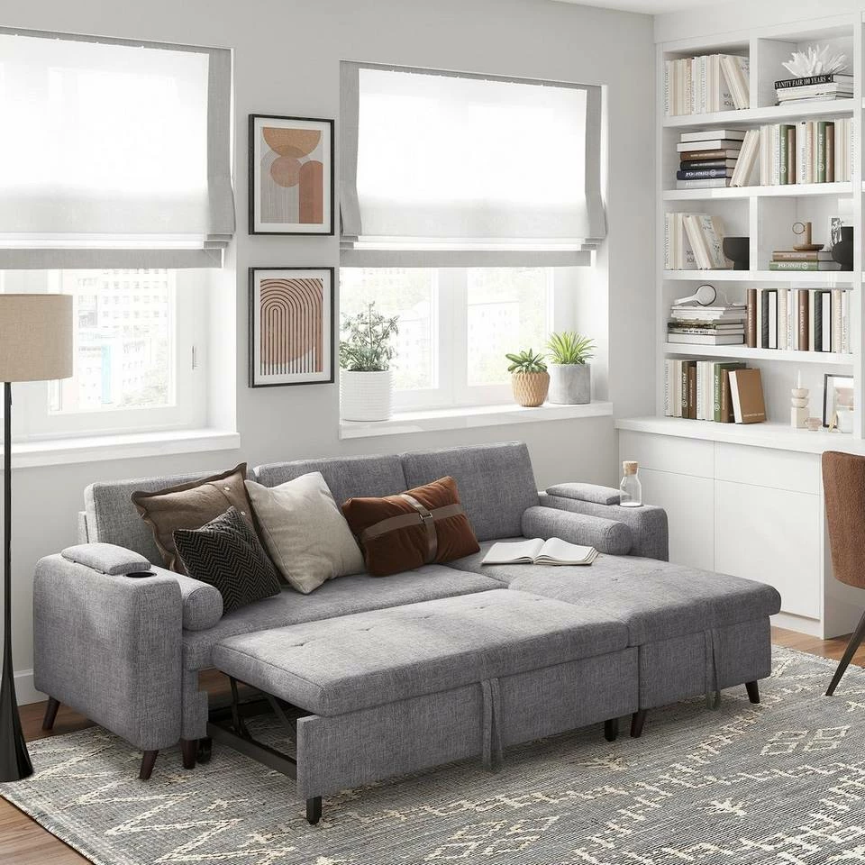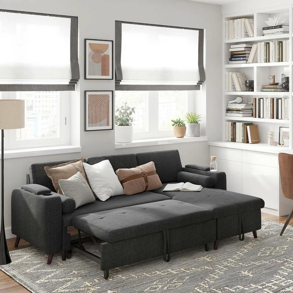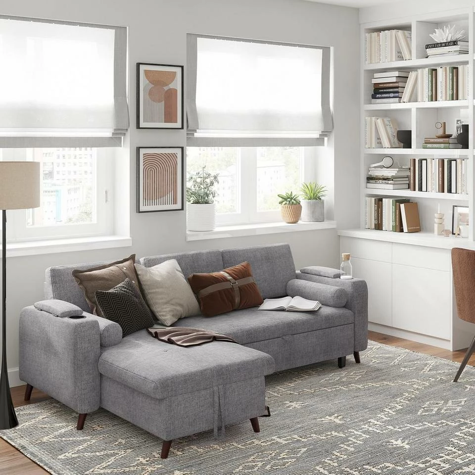 VASAGLE Schlafsofa »LCS801«, Bettsofa mit Stauraum, Ecksofa, mit Becherhalter, einfache Montage, 223 x 142 x 88 cm (L x B x H), modern Dunkelgrau, Hellgrau