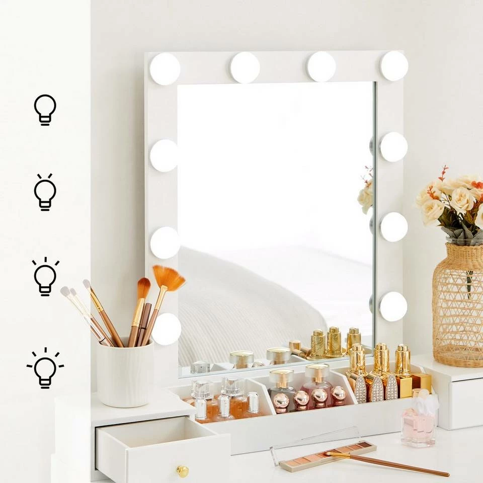 Verabschieden Sie sich von Make-up-Fehlern, die beim Schminken im Dunkeln nicht auffallen, aber beim Ausgehen leicht bemerkbar sind. 10 Glühbirnen, die den Spiegel umgeben, beleuchten Ihr Gesicht – Zaubern Sie ein perfektes Make-up!