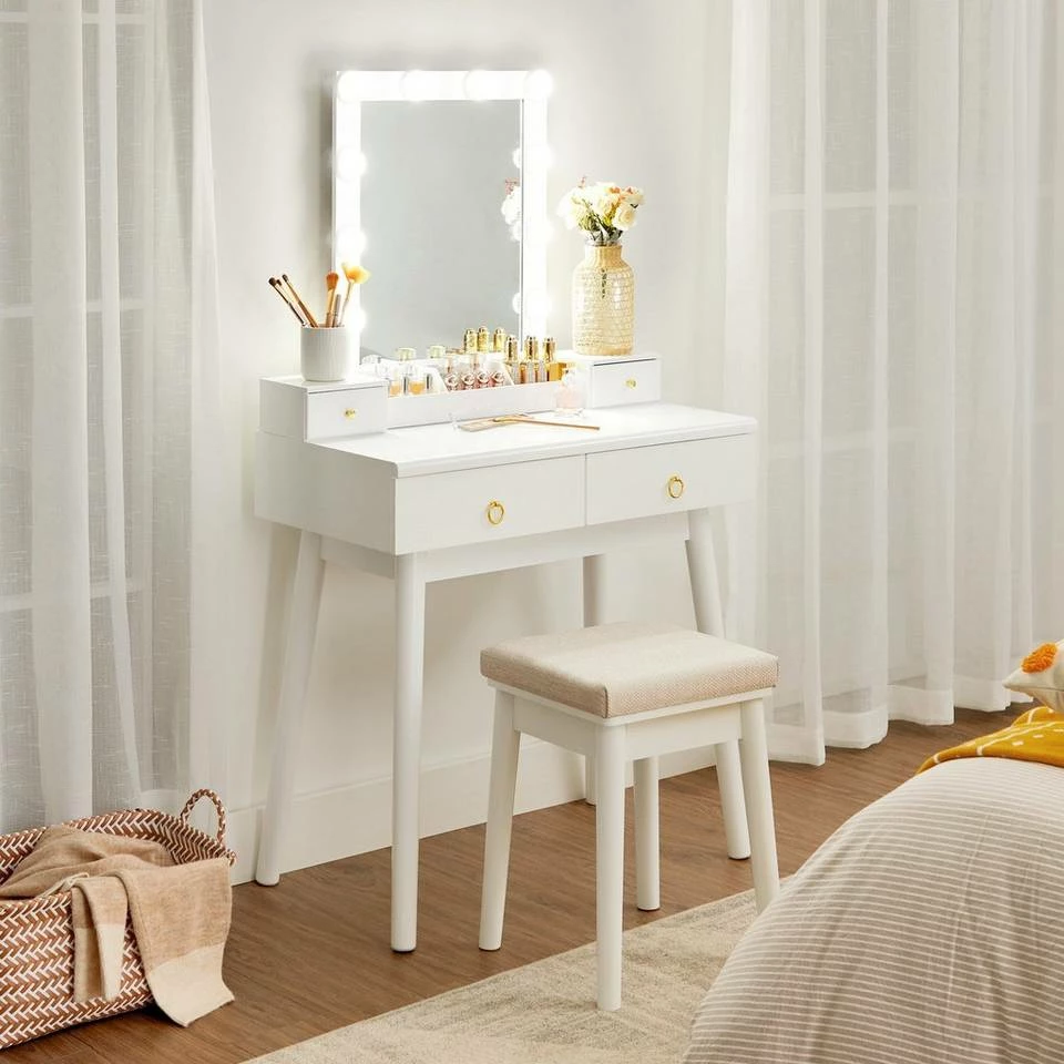 - 1 abnehmbare Ablage mit 3 Fächern, 2 kleine Schubladen oben, 2 große unten – All Ihr Make-Up passt perfekt in diesen Tisch
