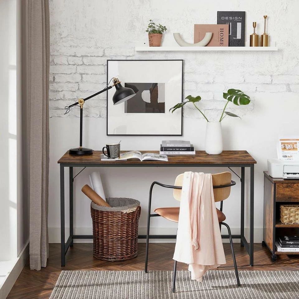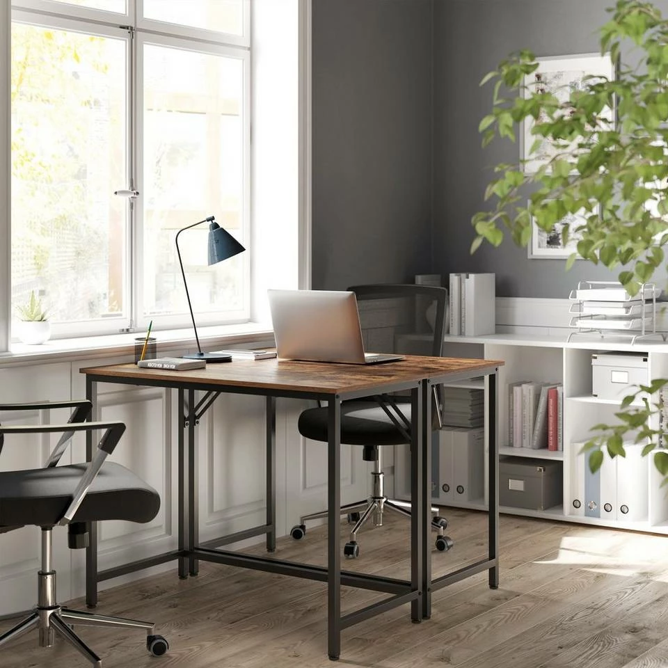 - Industriestil ist in: Sowohl im Büro als auch im Homeoffice. Dieser Schreibtisch verfügt über eine Oberfläche in warmen Vintage-Tönen und ein schlichtes schwarzes Stahlgestel