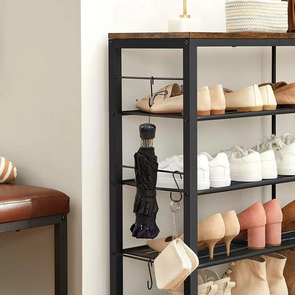- Dank des stabilen Stahlgestells und der robusten Holzspanplatten kann dieses Regal Ihre Schuhe locker tragen. Darüber hinaus ist es mit verstellbaren Füßen ausgestattet für stabil