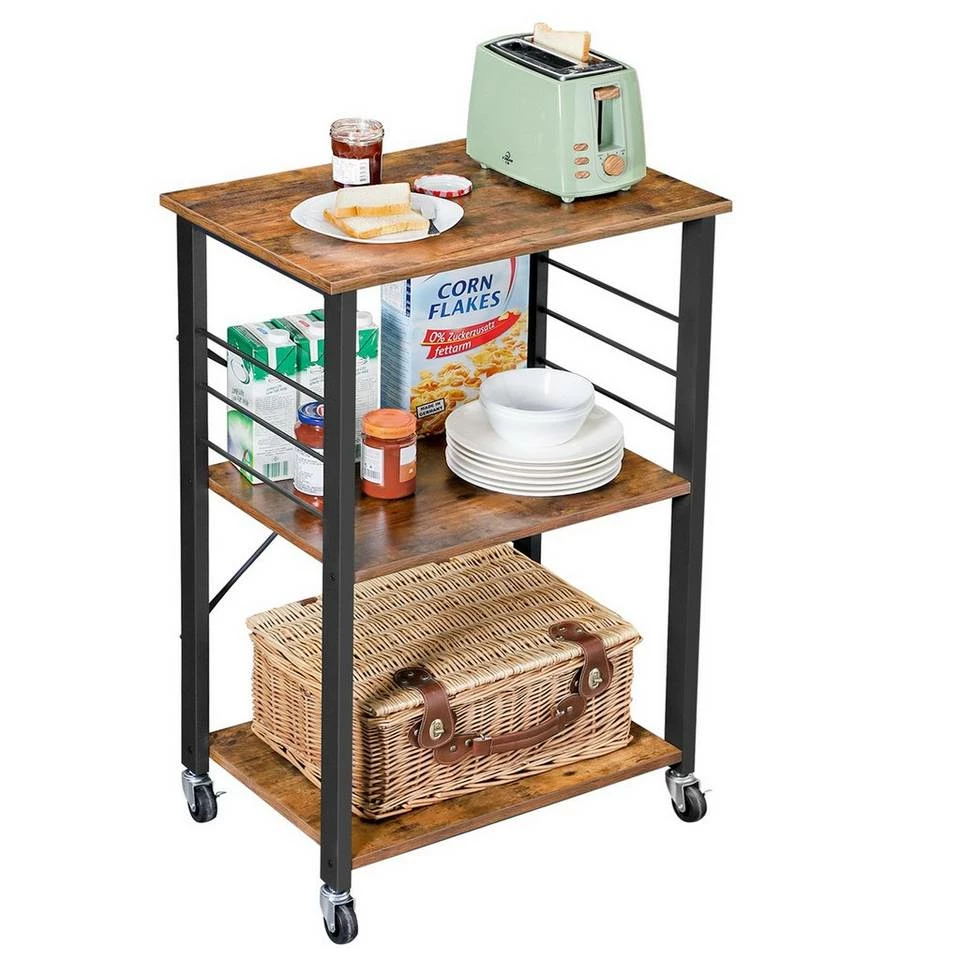 - MOBILE KÜCHE: Dieser Servierwagen flitzt auf 4 stabilen Rädern durch Ihre Küche. Stellen Sie die beiden Bremsen des mobilen Regals fest, um die Zutaten am Wegrollen zu hindern