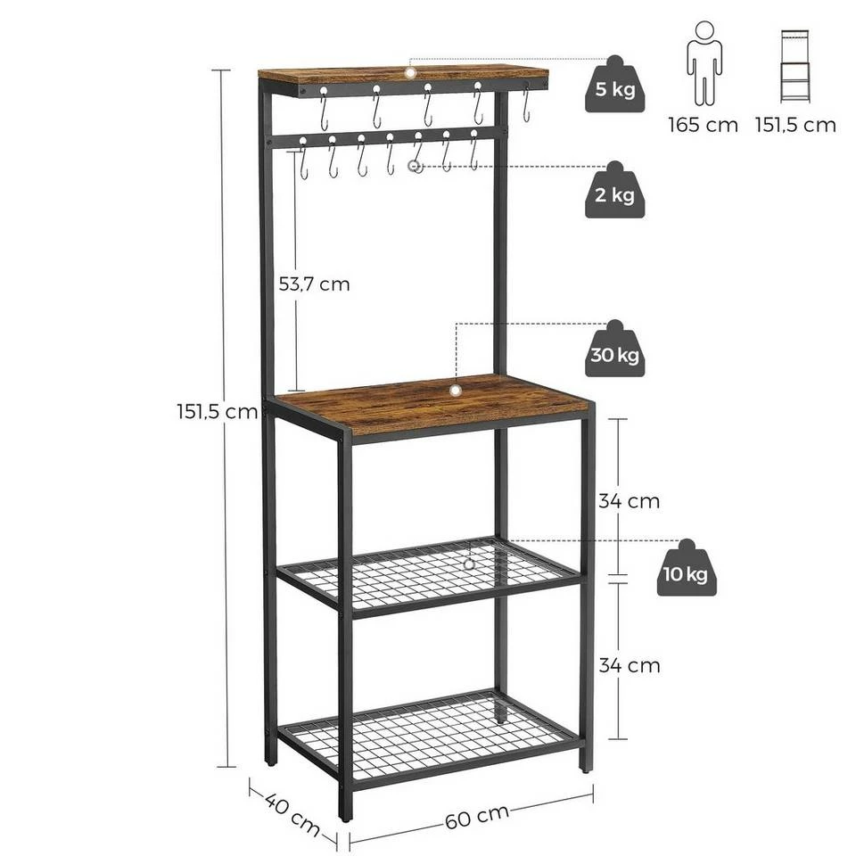 – Prüfen Sie sorgfältig, ob die Größe des Regals für Ihre Mikrowelle oder anderer Küchengeräte geeignet ist.