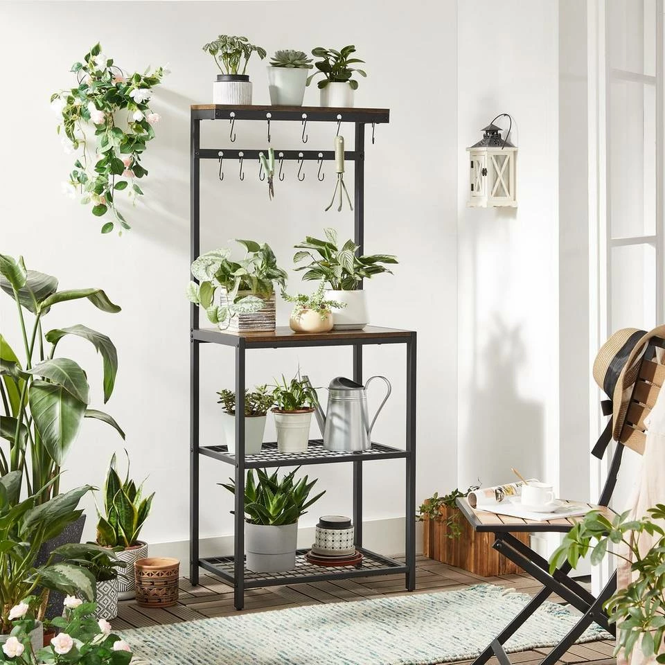 - Hängen Sie Ihre Tassen und Pfannen an den 2 Hakenleisten auf, die oberste Ablage, die Oberfläche und 2 Gitterablagen bewahren Ihre Kochutensilien auf