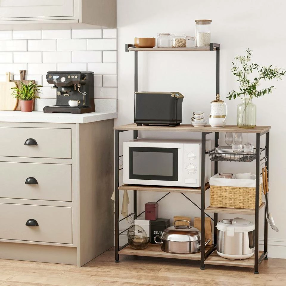 - WAS SIE BEKOMMEN: Ein Mikrowellenregal mit zahlreichen Ebenen aus unserer ALINRU-Kollektion und 6 S-Haken zum Aufhängen von Küchenutensilien