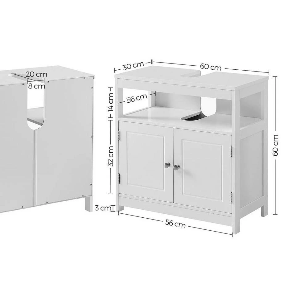 VASAGLE Waschbeckenunterschrank »BBC301W01« Badezimmerschrank, Aufbewahrungsschrank, 60 x 30 x 60 cm, weiß